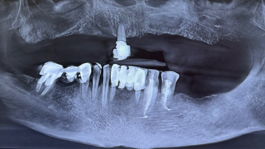 Вихідна ситуація: скарги пацієнта на повну відсутність зубів на верхній щелепі та часткову втрату на нижній. Це призводило до труднощів у жуванні, порушення дикції та зниження якості життя.