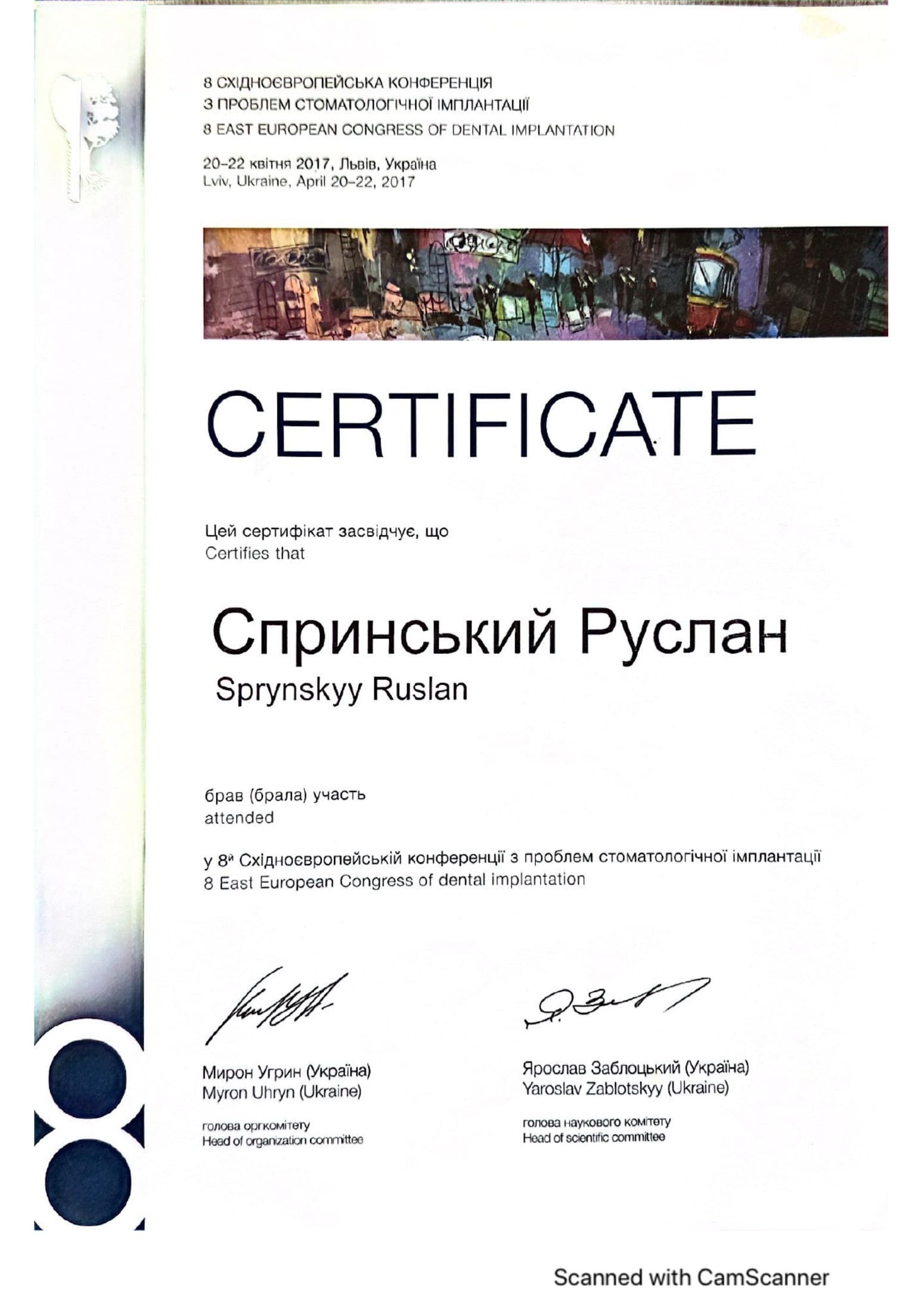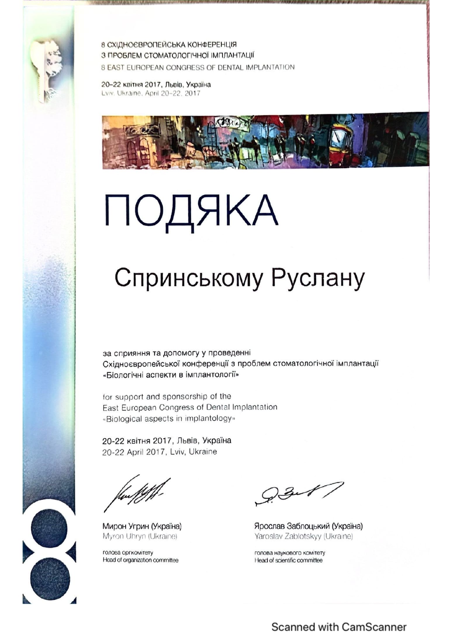 6. 8 Східноєвропейська конференція з проблем стоматологічної імплантації( Мирон Угрин, Ярослав Заблоцький 20 – 22 квітня 2017р).